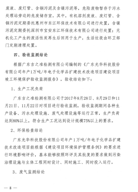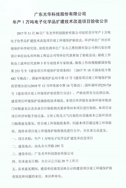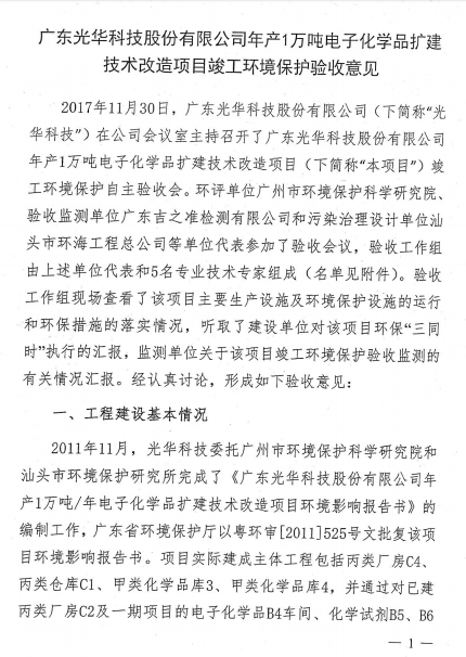 光華科技年產(chǎn)1萬噸電子化學(xué)品擴(kuò)建技改項(xiàng)目通過環(huán)保自主驗(yàn)收