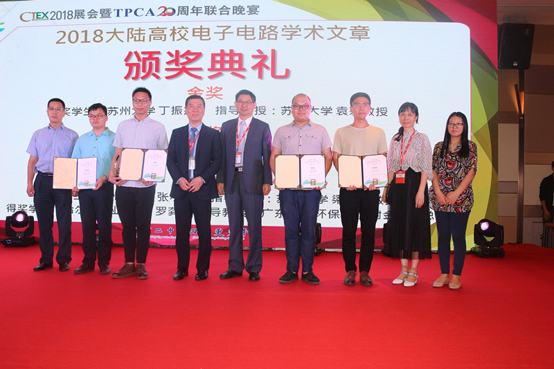 最后,光華科技總裁鄭靭先生為榮獲CTEX 2018高校電子電路優(yōu)秀學(xué)術(shù)文章的學(xué)子進(jìn)行頒獎(jiǎng)。